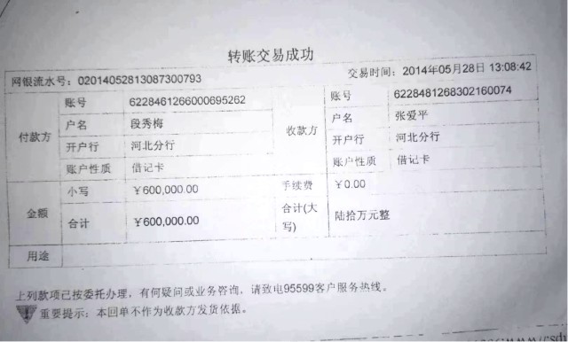 近日,媒体收到了河北省高碑店市的赵振山、段秀梅及河北省涞水县张昌文的实名反映信,并提供了相关证据,称陈立娜和赵振山、段秀梅借款纠纷一案,由于原告陈立娜故意隐瞒了还款事实,恶意虚假诉讼,造成执法机构查封了他们的工厂、房产等,还冻结了张昌文赖以生存的退休工资,给赵振山、段秀梅及张昌文造成了巨大经济损失和精神损害。反映至媒体,希望媒体发挥舆论监督的作用。接到反映信后,领导非常重视,随即安排专人进行了明察暗访,得知:陈立娜在河北省涿州市注册了涿州市德丰翔建材有限公司,公司法人陈立娜,股东有陈立娜儿子汪鑫,注册地址为涿州市双塔办事处华阳路北侧133号。陈立娜注册公司后利用公司经营为名,利用关系向银行申请贷款进行高利贷转贷,进行敲诈。2014年5月28日陈立娜转给段秀梅的400万元(见凭证2),是陈立娜通过张爱平从银行贷出来后,以月息3%的利率转贷给段秀梅的。因此,段秀梅按照陈立娜的指令及其提供的账号,于2014年5月28日段秀梅收到陈立娜转的400万元后,随即通过银行给张爱平转去60万元的好处费(证据如下)。
