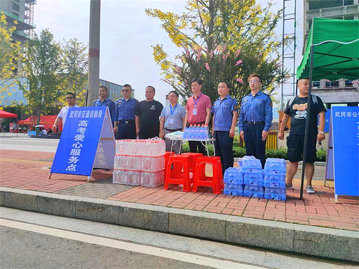 爱心助考,助力圆梦。市交通运输局城市客运服务中心安排10名工作人员在湖南师范大学附属武冈实验中学和武冈市第二中学两个考点周边进行全天候执勤,负责送考车辆的安全监管、疫情防控和应急处置工作,并设立“武冈市交通运输局高考爱心服务点”,免费为考生和家长不限量提供口罩、矿泉水和防暑药品等物资。