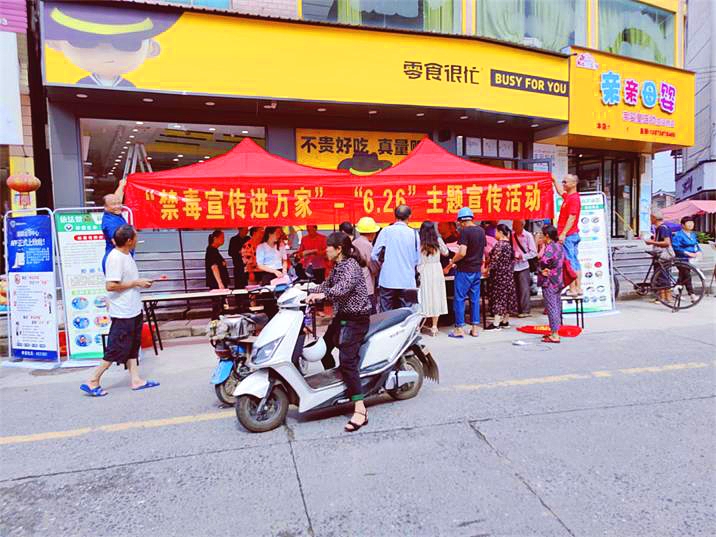 在活动现场,工作人员通过设立咨询台、展示禁毒知识展板、发放禁毒宣传手册及相关资料等形式,向过往的群众发放《识毒、防毒知识宣传册》《拒毒倡议书》等宣传手册700余份,宣传纪念品300余份,向他们详细讲解了毒品的种类、危害、相关法律法规,如何识毒、防毒、拒毒。同时以具体的案例介绍了毒品对个人身体、家庭和睦以及整个社会造成的危害,告诫广大群众要谨慎交友,不要进入治安复杂的场所,要有警觉戒备认识,提高对毒品的警惕性,采取坚决拒绝的态度,形成“全民防毒”的意识。